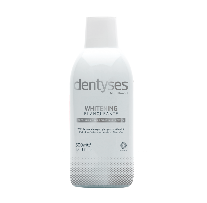 Daily use mouthwash with whitening-effect active ingredients. The DENTYSES line is aimed at oral care, and offers advanced solutions to oral issues.
