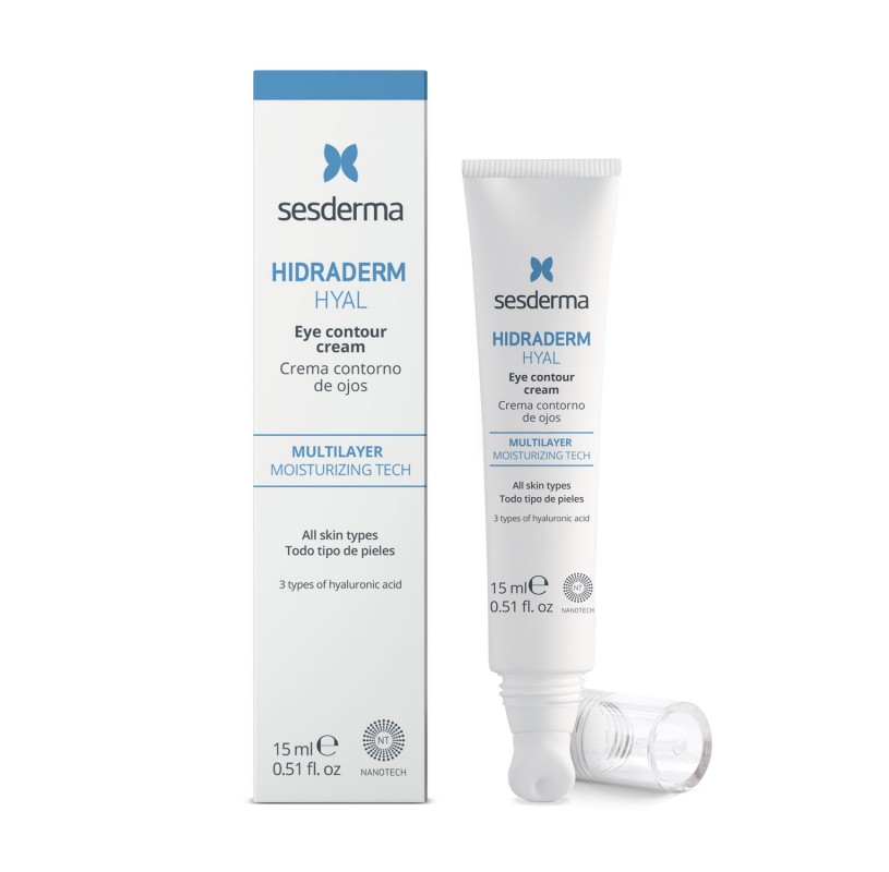 - Apply HIDRADERM HYAL Eye contour with fingertips, from the inner to the outer corner, tapping gently. The right amount is a pea-size to spread evenly on both eye contours. Use it in the morning and at night.