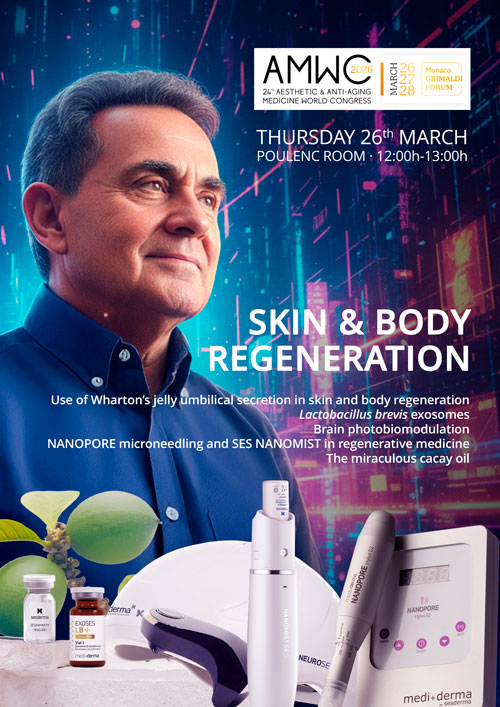 Sesderma y Mediderma estarán presentes en AMWC Mónaco, reforzando su compromiso con la innovación, la ciencia y el futuro de la medicina estética y regenerativa en uno de los congresos internacionales más relevantes del sector.